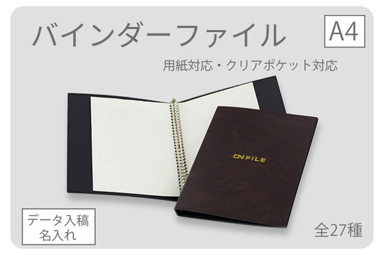 耐久性とクオリティーを誇るオンファイルオリジナルのバインダーファイルです。長年、ご好評いただいており契約書、重要書類、不動産ファイルに適しています。高級国産本革を使用したタイプがお勧めです。