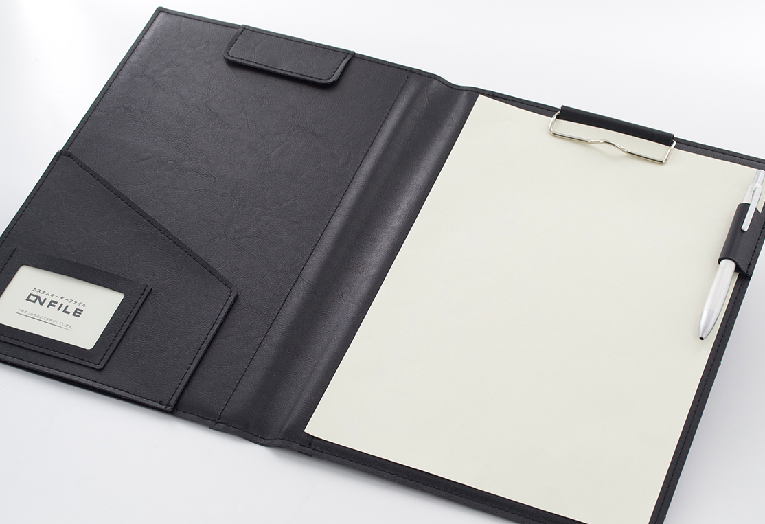 見た目は重厚感があり存在感のあるクリップファイルですが、当店オリジナルの設計で