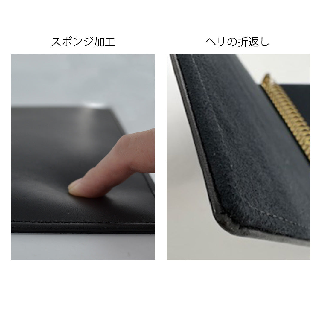ヘリは巻込み仕様で丁寧に仕立て表紙・裏表紙の双方にスポンジを内蔵し、より高級感を演出いたしました。