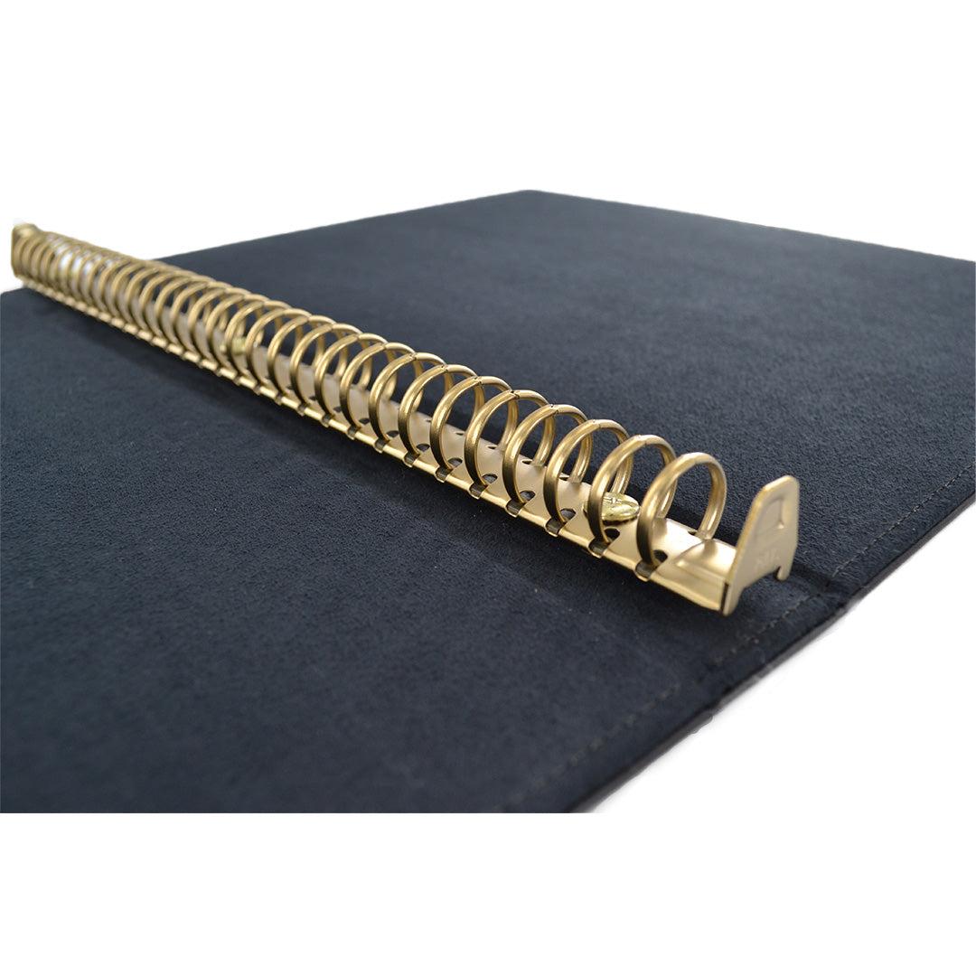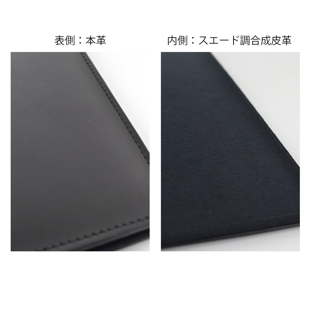 表紙には本革を使用し、内側には上質なスエード調素材を採用。手触りと質感に優れたバインダーファイルです。