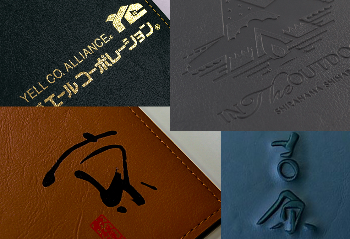 オンファイルでは他にはない刺繍による名入れや、箔押し、シルク印刷、型押しとさまざまな名入れをご用意しております。